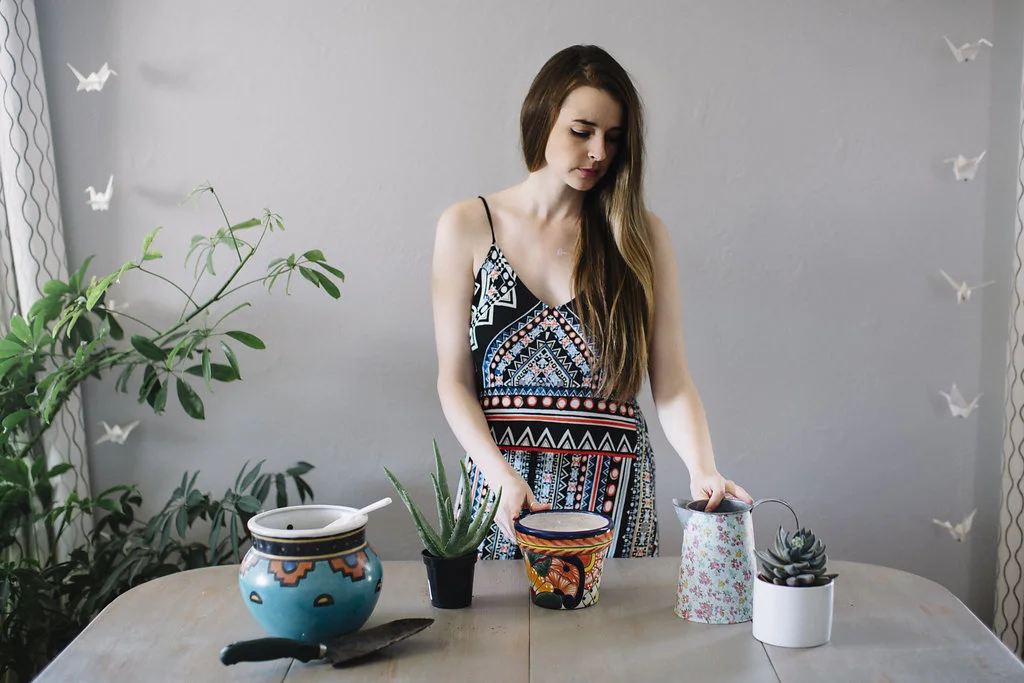 Step Six: Water that sucker! Rule of thumb with watering plants is to make sure you don't over water. The way to check if your plant baby needs water is to stick your finger about an inch into the soil. If it's dry, then give it some water. If it's not, leave it alone.