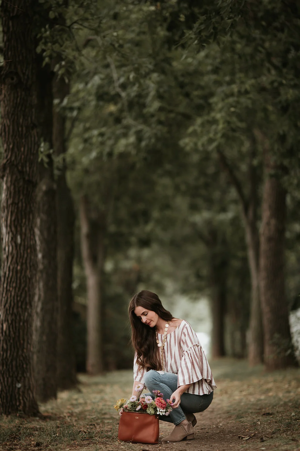 1. Listicle Rose & White Stripped Top (exact) | Rose & White Stripe Lace V-Neck Top (similar): The first one is the one I am wearing in the photos. It's from the most charming shop called Daisy Love Boutique. Everything I have owned from this store is simply divine. The sleeves are to die for and the pattern of the stripes makes me feel like my torso is longer than it is despite it being a shorter shirt. I would highly recommend it!